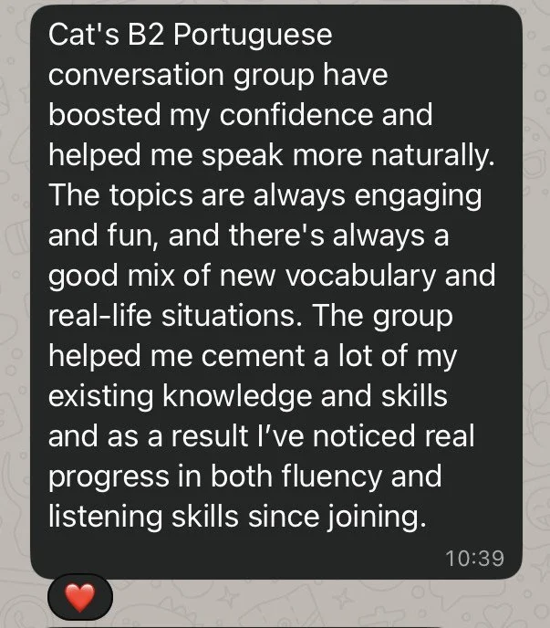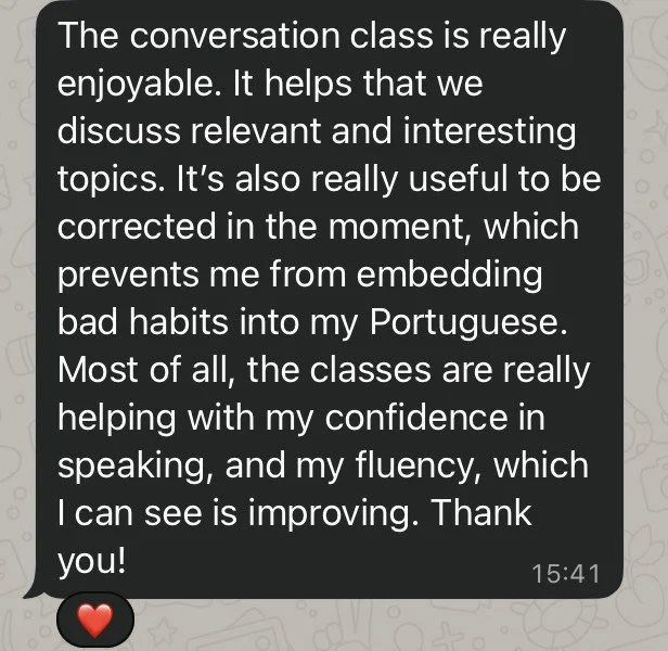 This group is tailored for learners who have already reached a upper-beginner level and want to continue improving their Portuguese fluency in a fun, productive, and supportive environment.