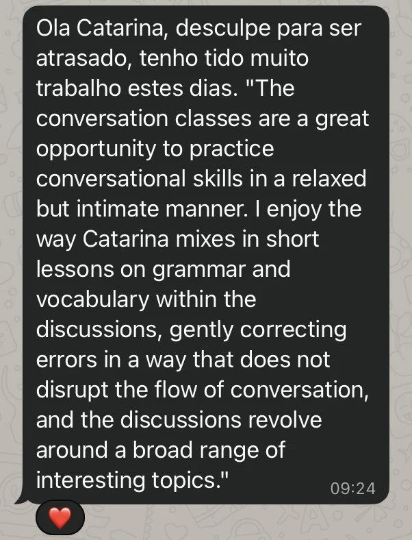 All course materials provided by Portuguese with Cat are protected by copyright. Reproduction or distribution of course materials without explicit permission is strictly prohibited.